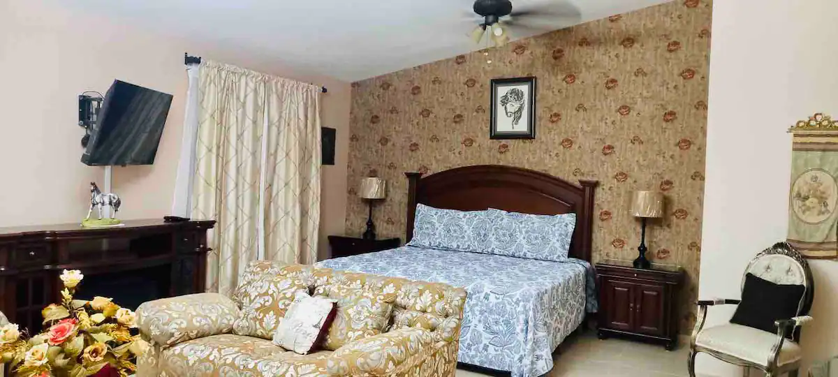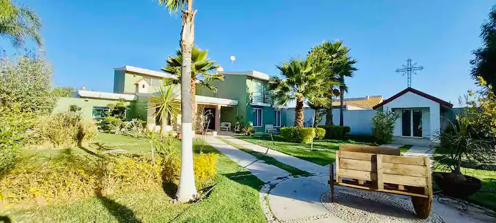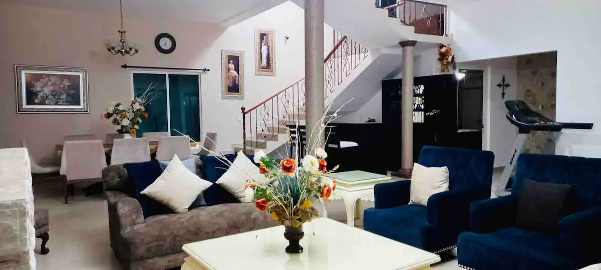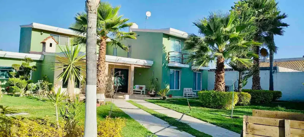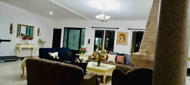 This Hacienda is safe and closed. It has 4 bedrooms and 2 bathrooms inside the house. It is very spacious for large groups.